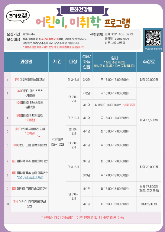 취미 여가 강좌는 월 단위 프로그램으로, 결석할 경우 이용료는 환불되지 않습니다.