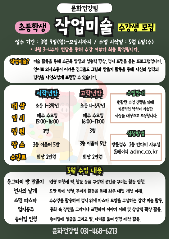 <저학년반>작업미술교실 * 4월 면담, 5월 개강 접수중