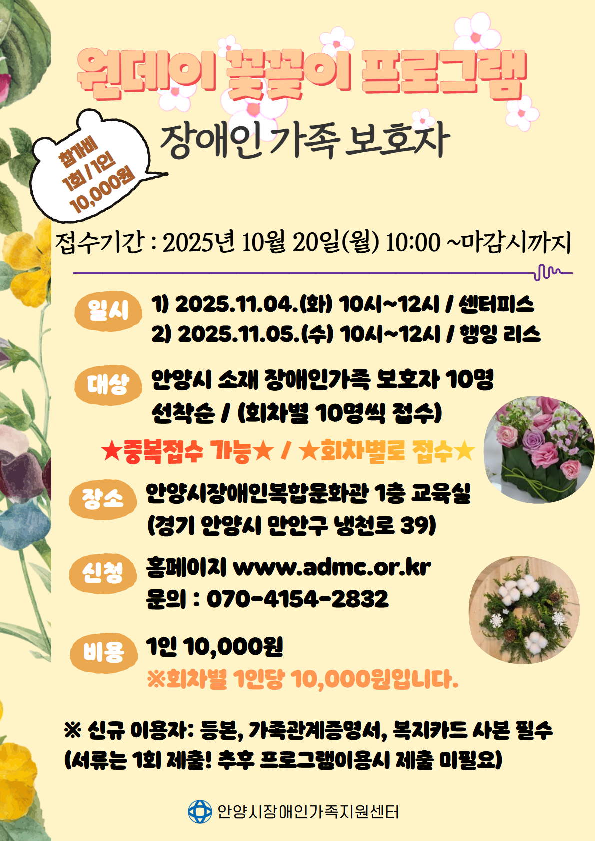 원데이(꽃꽂이) 프로그램 / 11월 4일(화) 10:00~12:00
