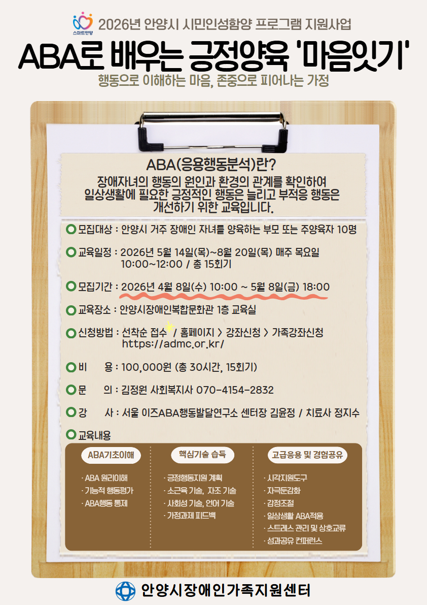◆ 개인정보의 수집 및 이용 목적: 안양시 발달장애인평생교육센터 프로그램 이용 및 정보제공, CCTV 녹화를 통한 이용인의 권리 및 안전 보호
