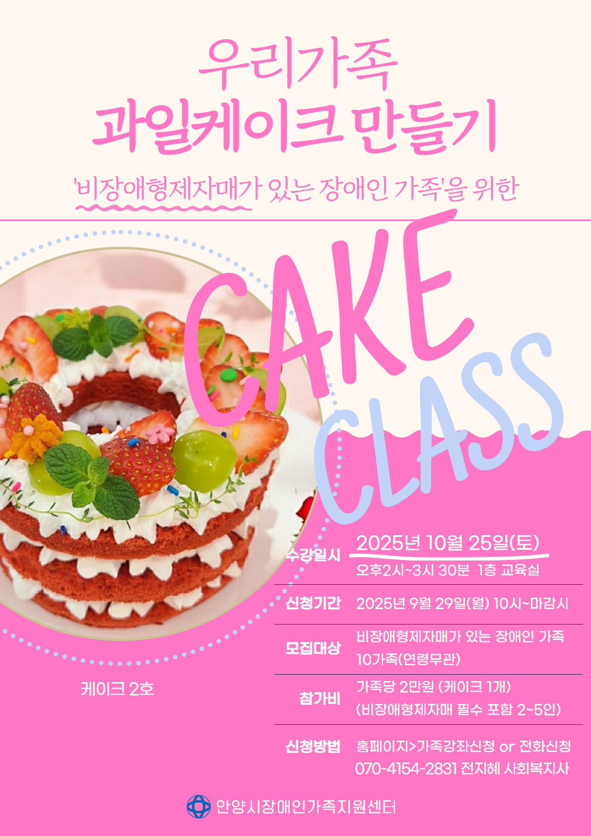 비장애형제자매를 위한 우리 가족 과일케이크 만들기(참여가족 모두 입력) 접수중